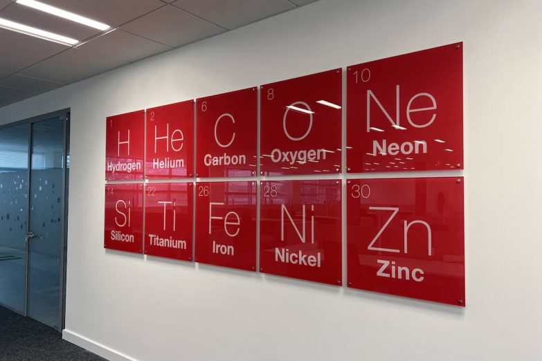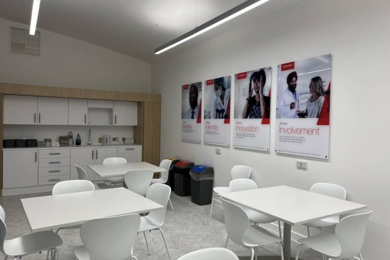In communal areas like the canteen, we supplied and installed a series of reverse-printed acrylic panels. The depth and clarity of these pieces added real visual weight to the rooms, while the imagery tied everything back to the brand. The result was a space that felt more thoughtful, more modern, and more alive.