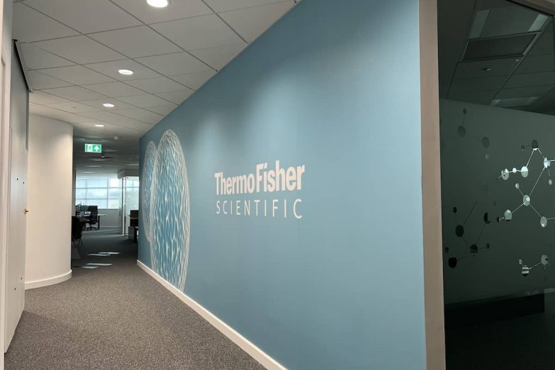 When Thermo Fisher Scientific, a global biotech company, wanted to elevate their Cambridge headquarters, they weren’t looking for basic signage or decoration. They needed a complete visual overhaul across three floors. Their offices needed to reflect the innovation of their brand and create a more engaging, professional environment for staff and visitors alike.